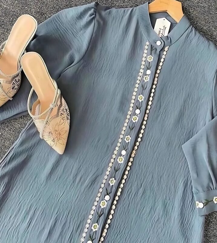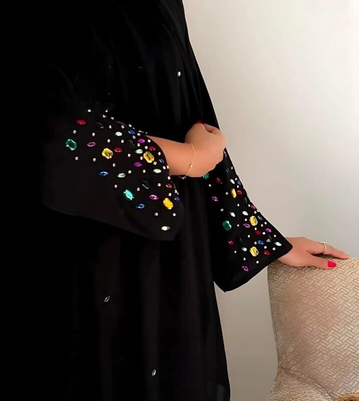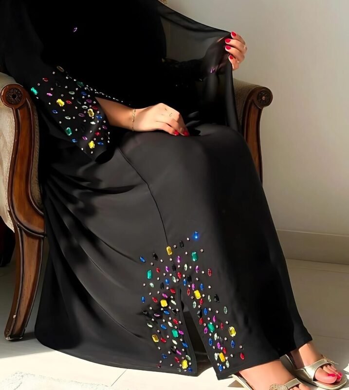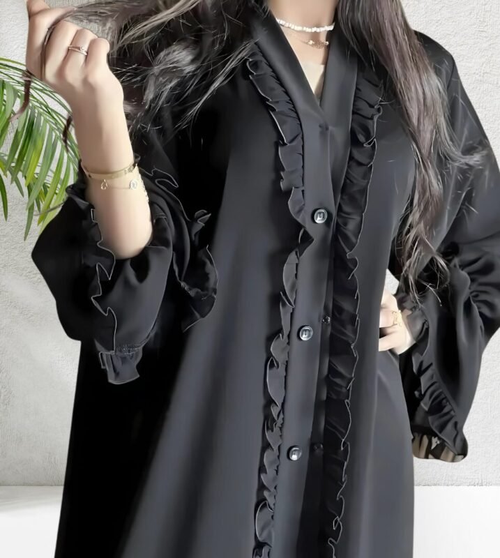 Embroidery Front open A line abaya